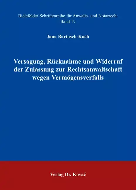 Jana Bartosch-Koch - Versagung, Rücknahme und Widerruf der Zulassung zur Rechtsanwaltschaft wegen Vermögensverfalls